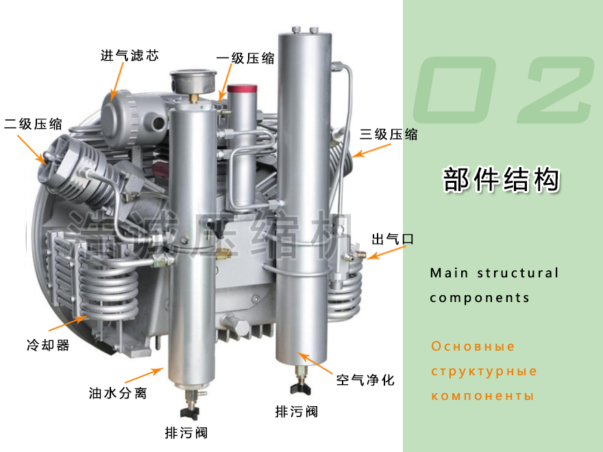 三缸三級壓縮 設計確保高效穩定的高壓空氣輸出。