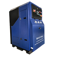 特點:PLC系統、自動啟停機、自動排污、溫控系統、相序保護功能、缺油保護、觸控顯示屏、快速充瓶